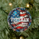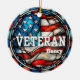 Custom Veteran Faux Stained Glass American Flag Ceramic Ornament