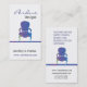 Blue victorian chair with damask ornate patterns on this cool business card template. Trendy, unique antique furniture calling card for those who work in designs, home decor and antiques.