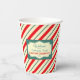 Having a holiday event? Create personalized paper cups to welcome guests to the party! Santa is holding a Christmas ornament and laughing as he looks out of his twinkling eyes at you! Great paper tableware for holiday time and Christmas parties!