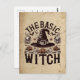 Introducing the perfect blend of humour and charm with our "The Basic Witch" Halloween postcard! This delightful card features a whimsical illustration of a classic black witch hat adorned with a silver buckle, surrounded by playful jack-o'-lanterns, vintage pumpkins, eerie skulls, and cobwebs. The intricate design captures the essence of vintage Halloween vibes, evoking the nostalgia of cauldron spells, spooky full moons, and black cats.
