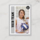 Be just like the pros by having your very own custom, volleyball player trading card. This sports card can be edited to feature photos of yourself on the front and back, along with your personal volleyball statistics on the back. The card's front is light grey with a vertical zone on the left side where you can insert your team name in a vertical, black sports font. In the upper right is a volleyball image in black with the player's position. The background of the card's back features a gymnasium floor. The stats that can be edited are Set Plays; Kills; Kill Errors; Total Attempts; Service Aces; Digs; Blocks.