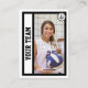 Be just like the pros by having your very own custom, volleyball player trading card. This sports card can be edited to feature photos of yourself on the front and back, along with your personal volleyball statistics on the back. The card's front is white with a vertical zone on the left side where you can insert your team name in a vertical, black sports font. In the upper right is a volleyball image in white with the player's position. The background of the card's back features a gymnasium floor. The stats that can be edited are Set Plays; Kills; Kill Errors; Total Attempts; Service Aces; Digs; Blocks.