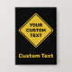 Diamond shaped yellow warning sign. Custom background colour. Custom text.