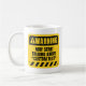 Make your own unique and personal custom warning coffee mug to treat yourself, or to give as a birthday or christmas present to your loved ones. This template displays a yellow square caution sign with rounded corners, black diagonal stripes and exclamation mark. Finish the sentence "may start talking about" with your chosen subject, (the maximum length is 13 characters). Show off your personality with this funny mug and express how much you love a specific topic, such as: hobbies, sports, tv programmes, books, academic subjects, pets, vehicles, fictional characters, etc.