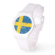Custom watch with Swedish flag of Sweden. Add your own personalized name. Cool watches with country flag. Scandinavian pride design.