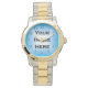 To customize this product, upload your own background image or photo as shown above.  To resize or adjust its position, click the Customize It! button below the product image.  The positions of the numbers on the clock face can also be tweaked to your liking by resizing the transparent clockface image.  You can also add your own text and/or other images if you wish to further personalize this design.