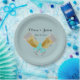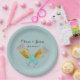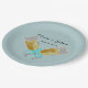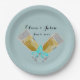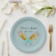 Add fun to a party for the engaged couple, a bridal shower, or anniversary parties with pretty, personalized paper plates. Shown here in a pastel teal background to match the ribbon on the champagne glass.