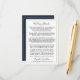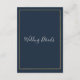 This simple and elegant wedding details card with elegant hand lettered navy blue script and black text and a gold border gives you the place to inform your guests of anything at all -- it can include your wedding website and information that tells them what to expect at the website, i.e., accommodations, wedding registry, transportation, etc. Instructions on how to use this card are found in the text under "Personalize This Template". The most important information you need your guests to know should be included on this card, especially for the guests who do not use the internet.