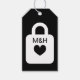 Custom wedding gift tag with monogrammed love lock. Cute padlock and heart keyhole. Great for party favours, beautiful presents and more. Personalized design with name initials or monogram. Add your own thank you text on the back. Modern typography template. Black and white example. Customizable colours.