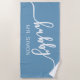This blue script hubby towel is the perfect accessory to bring a love vibe to your beach or pool outings.