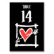 Custom Wedding Love Heart Black & Red Table Number