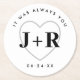 Custom Wedding Monogram Initials with Heart Round Paper Coaster