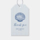 Our custom blue and white stripe seashell coastal wedding name thank you gift tags make the perfect addition to your party or wedding favours.