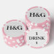 Custom wedding party poker chips for 1 free drink. Classy party favour design template with custom text or dollar value amount. Great for Vegas wedding party and more. Customizable edge colour. Pink, black, blue, red, green, orange, grey, yellow etc. Elegant font with grey chevron zig zag stripes.