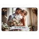 This announcement flexible magnet is shown with a template layout of a sample photo print of a wedding couple.