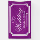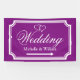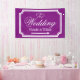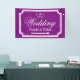 Wedding directional sign banners in custom colours. Indoor and outdoor quality. Elegant personalized royal purple and white wedding direction sign pointing left or right. Turn arrow to your preference. Help guests find their way to your reception party. Classy design with stylish border, interlocking hearts and name of bride and groom couple. Fancy script typography. Available for left and right direction. Personalizable directional road signage to hang up on fence or wall. Also handy for parking or cocktail bar in different locations. Available in different sizes for inside and outside. Small medium and large shapes. With or without holes and hooks. Black and white or customizable background colour. Add names to the template.