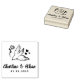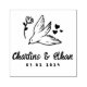 A charming personalized rubber stamp featuring a graceful dove carrying a flower with delicate heart details. Perfect for adding a romantic and meaningful touch to wedding invitations, envelopes, favours, thank-you cards, and more. Customize with your names and date to create a unique keepsake for your special day.