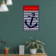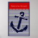 Custom Welcome Aboard Anchors Stripes Pattern Poster