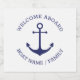 Custom Boat name or Family name, Welcome Aboard, nautical navy blue anchor white background sparkling wine Label
