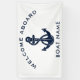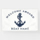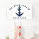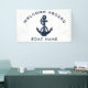 The nautical anchor welcome banner design not only adds a timeless aesthetic but also complements any boating enthusiast's collection. Featuring the boat's name, and a navy blue anchor and rope, personalize to create a unique gear for your boat. Makes a great display for any occasion on the boat.