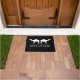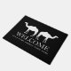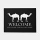 Custom welcome door mat with camel design. Black and white entry rug with personalized family name. Elegant typography with modern animal silhouette. Available in small and large size. Customizable colours.