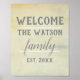 This custom welcome poster typography design is ready to personalize with your family name on distressed background shabby chic style wall art for home decor or wedding gift.