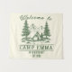 Celebrate a milestone birthday with a unique camping twist! Our "Welcome to Camp [Name]" custom tapestry is the perfect backdrop for outdoor-themed birthday parties, especially for nature lovers and adventure seekers. Featuring a rustic cabin, towering pine trees, and mountains in a vintage sketch style, this personalized wall hanging is ideal for decorating tents, cabins, or party venues.