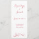 Custom white and pink (Strawberry Ice) wedding menu custom invitations with customizable text