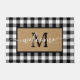 Beautiful contemporary black and white chequered plaid pattern with friendly Welcome greeting written in an elegant stylish calligraphy font. With room to customize or personalize with family name monogram or initial of your choice. Original simple rustic style decor accent for decorating the front porch or doorstep of your country cottage house, log cabin, mountain lodge, fishing camp, lake or river vacation home.
