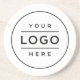 A clean sandstone coaster featuring a crisp white background with a bold black business logo framed in a classic circular border. Perfect as a branded accessory for corporate offices, bars, cafes, restaurants, and promotional giveaways. The logo is fully customizable, and the cork backing protects surfaces from moisture.