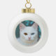 Custom white cat photo & editable text ceramic ball christmas ornament