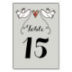 An illustration of 2 beautiful doves holding flowing ribbon with a love heart attached.