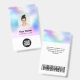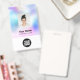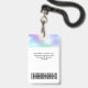 Easily personalize this Custom White Employee Name Badge with Photo, Scan Bar Code and business logo. A simple business design in iridescent holographic ombre colours and white colours fully customizable in front and back sizes, sans-serif basic and modern fonts and a professional and clear look. Avaiable with lanyard, metal clip or with retractable. No minimum order.