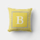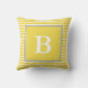 This yellow pillow has a striped pattern in the background. There's a customizable white initial in the centre of a yellow square. Personalize this throw pillow with the recipient's monogram.