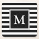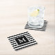 This black and white striped paper coaster has a large white monogram in the centre that you can personalize with your initial. Your monogram is in white text on a black background.