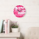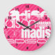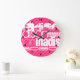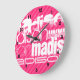 Custom White Name Pattern on Hot Pink Stripes Large Clock