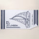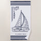 Create a personalized beach towel for your vacations at the lake in white and navy blue colours. Type your family name or another text using the template. Sailboat illustration, stripes and the Life is Better at the Lake saying decorate the towel.
