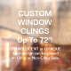 Custom personalized vinyl window clings - for windows & glass doors of stores, coffee shops, restaurants etc, and for business promotion & branding. Sizes up to 72" x 52"! These 7.5mm static cling vinyls are also fun for home, and for kids' bedrooms & nurseries. No tack - sticks to glass with static electricity! Simply peel away to reposition/remove.