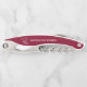 Customized corkscrew with illustration of grapes and vines on a red background, custom name of the winery, wine bar, restaurant or any other name.