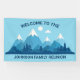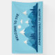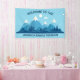 Customized blue mountain party banner for your ski lodge or Colorado mountain celebration for people who travel for skiing and winter vacation. This cool custom design features a cute drawing of snow capped mountains and a blue landscape. A great nature landscape for an outdoors loving family for their nature expedition. Great to promote your restaurant or travel shop.