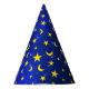 Dress for any magical occasion with these custom Witches and Wizards party hats! The design features a deep blue galaxy backdrop and is decorated with yellow stars. You can customize these hats!