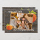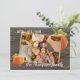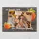 Unique, classy, trendy, pretty and decorative Thanksgiving holiday card. Cute WITH LOVE FROM text and room to customize or personalize with a photo and names (or family name) of your choice. With cute classic orange pumpkins on a weathered looking grey rustic farmhouse inspired barnwood planks pattern background design. And a customizable season greeting poem on the backside of the card.