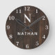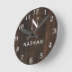 Custom Wood Texture Name Monogram Round Clock