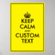 Custom yellow keep calm wall poster template. Create your own funny keep calm and carry on quote. Cool wall decor for bedroom, office, pub, bar, cafe, restaurant, dorm etc. Modern typography with crown and stylish border. Colours can be changed.