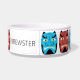 This pet bowl features traditional Japanese folklore oni demon in a blue and red repeat pattern. Personalize it with your pet's name!