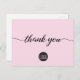Personalize this simple and easy to use thank you postcard template with your company's logo, message, name, and return address. Let your clients, customers, patrons know you are grateful for their support during these uncertain times. Featuring a printed modern "thank you" script with long-tailed embellishments. Pink and black.