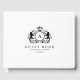 Celebrate your love story with timeless elegance using this Custom Crest Wedding Guest Book. Featuring a regal crest with a personalized monogram, your names, and your special date, this design is perfect for classic, royal, or black-tie weddings. The black and white layout makes a bold, sophisticated statement.