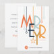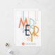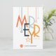 This modern era postcard features a colourful art deco style font with abstract ornaments on a white background with a spot to insert you company logo.