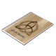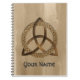 Simple coloured Celtic triquetra interlaced with a circle forming a trinitarian symbol craved against a wood background, representing spiritual unity with the divine. Customize it with your name!