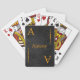 Customisez votre nom et initiale sur des cartes de jeu de bicyclette avec les milieux rouges, bleus, verts, noirs, de sarcelle d'hiver ou de cerise de faux de cuir (les photos du public domain)